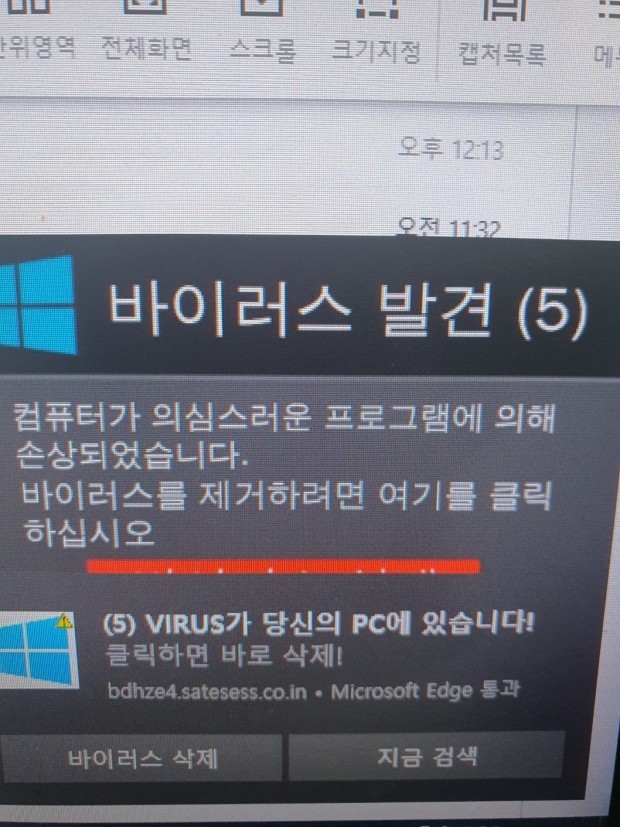 며칠전부터 컴퓨터에 바이러스 발견 이라고 알림창이 수시로 떠서 대체 이게뭐지 하고 눌러봤습니다.