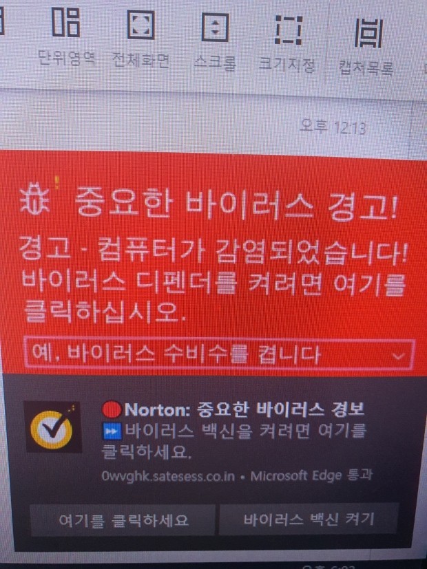 클릭했더니 노턴 안티바이러스라는 프로그램의 창이 뜨면서 바이러스를 제거하려면 유료로 결제를 하라고 하더라구요.
